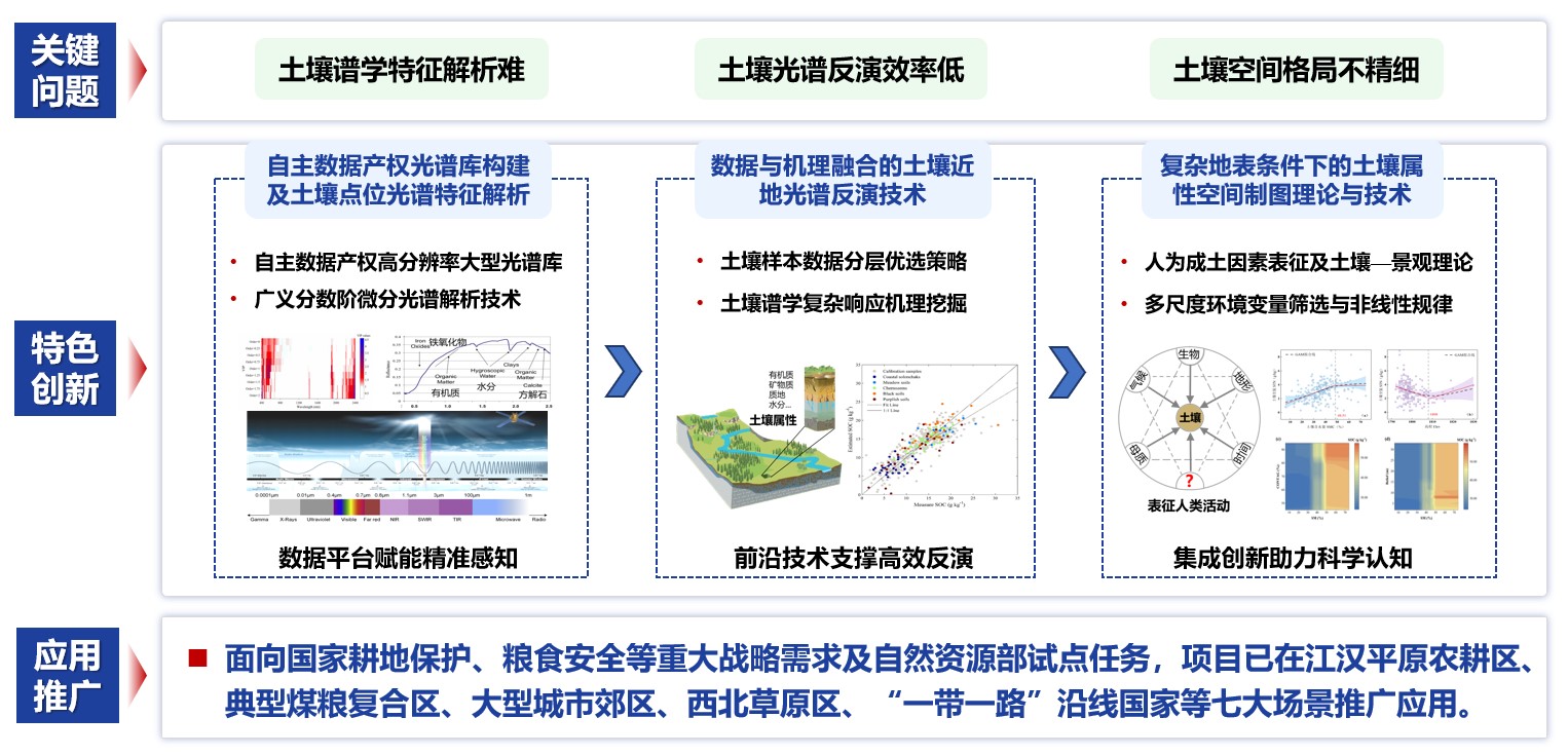 目前,相关技术成果已成功应用于全国十余省区的土壤资源调查、肥力质量与环境质量监测等领域,主笔的咨政报告获中办采纳,为保障耕地土壤健康和国家粮食安全提供了科技支撑和决策参考。