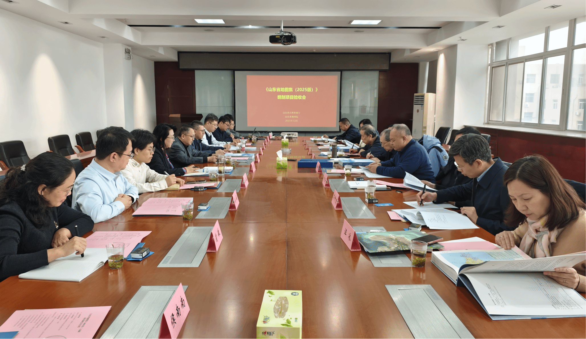 2025年12月20日,学院参加的《山东省地图集(2025版)》(以下简称《图集》)编制项目验收会在郑州市信息工程大学召开。验收会由山东省自然资源厅组织召开,专家组由中国工程院院士、河南大学王家耀教授担任组长,成员为来自中国科学院地理所、中国测绘科学研究院、91沈先生