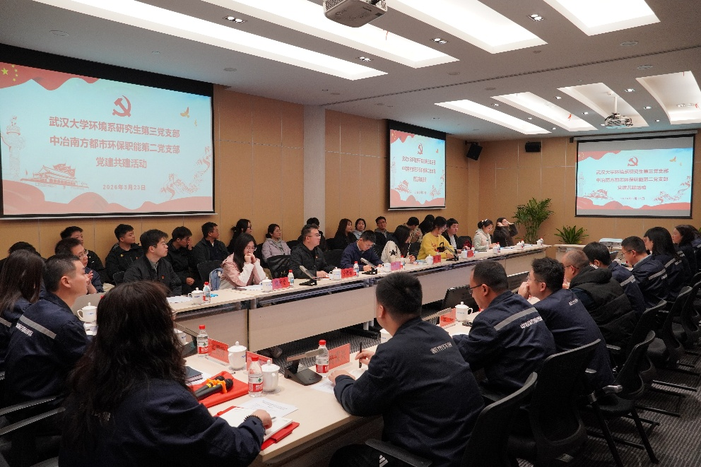 “环语菁英”论坛(第4期)在中冶南方都市环保工程技术股份有限公司顺利举行。本次论坛以“探访都市环保,共话生态文明”为主题,旨在深化校企合作,搭建产学研交流平台,增强研究生党员的行业认知与职业规划意识。本次活动由环境科学与工程系研究生第三党支部(以下简称“环研三支部”)与中冶南方都市环保工程技术股份有限公司(以下简称“都市环保”)职能第二党支部联合开展,都市环保职能第二党支部书记、科技开发部部长朱能闯,资产管理部部长张立宏,科技开发部技术开发室副主任向浩,学院环境工程系系主任尹华意教授,学工办副主任、团委副书记梅菲老师,团委副书记仝德富老师,以及都市环保职能第二党支部、资环学院环境科学与工程系研究生第一至第四党支部的党员和积极分子代表等共计70余人共同参会。