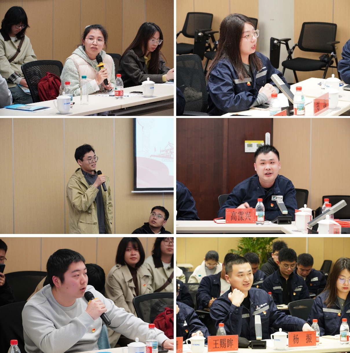 在互动提问环节,仝德富老师首先介绍了本次活动到访的目的,希望同学们结合分享主题积极提问和交流。随后,梅菲老师回顾了与到场校友的温情故事,并请他们结合自身经历为同学们分享就业经验。就职于都市环保的多位校友围绕职业选择、岗位适应、能力提升等方面,向支部同学们分享了工作心得与就业建议。他们从企业用人视角出发,详细介绍了公司的岗位类型、发展路径以及企业对毕业生的核心能力要求,为同学们提供了真实、务实的职业发展参考。随后,环研三支部同学们围绕个人学业与职业规划积极提问。毕业年级同学则聚焦就业需求,详细询问都市环保的招聘岗位类型、招聘流程及对毕业生能力素质的具体要求;其他同学则针对企业核心业务领域、技术研发方向,以及“高校博士向企业就业的角色转变、工作内容差异、研发环境适配”等问题展开深入交流。都市环保的各位领导及多位校友逐一耐心解答,为同学们提供了细致的指导。