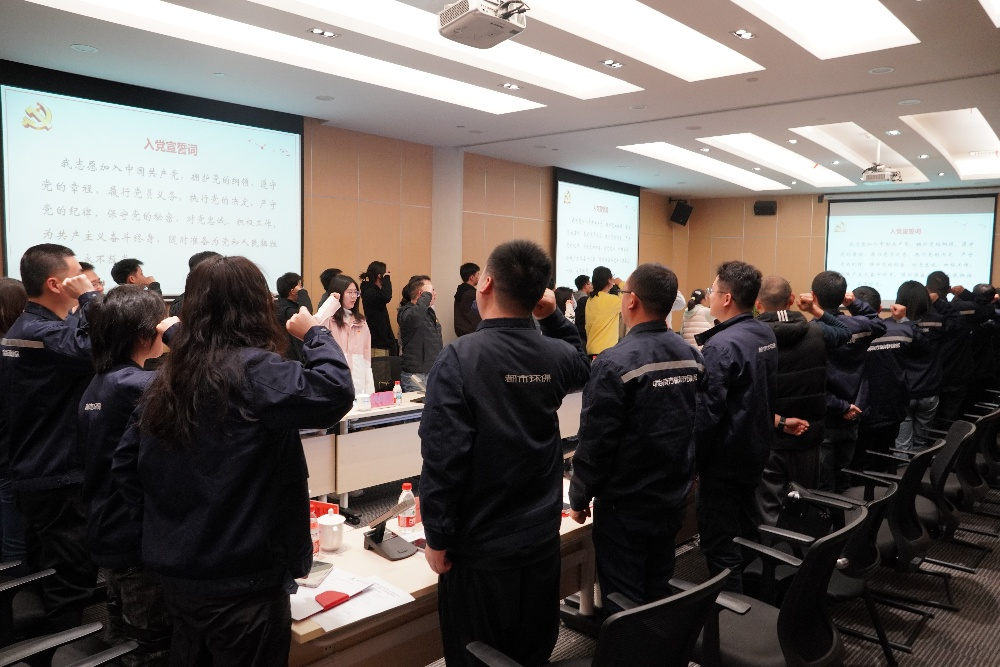 最后,全体与会党员重温入党誓词并在都市环保办公大楼前合影留念,为本次支部共建活动画上圆满句号。