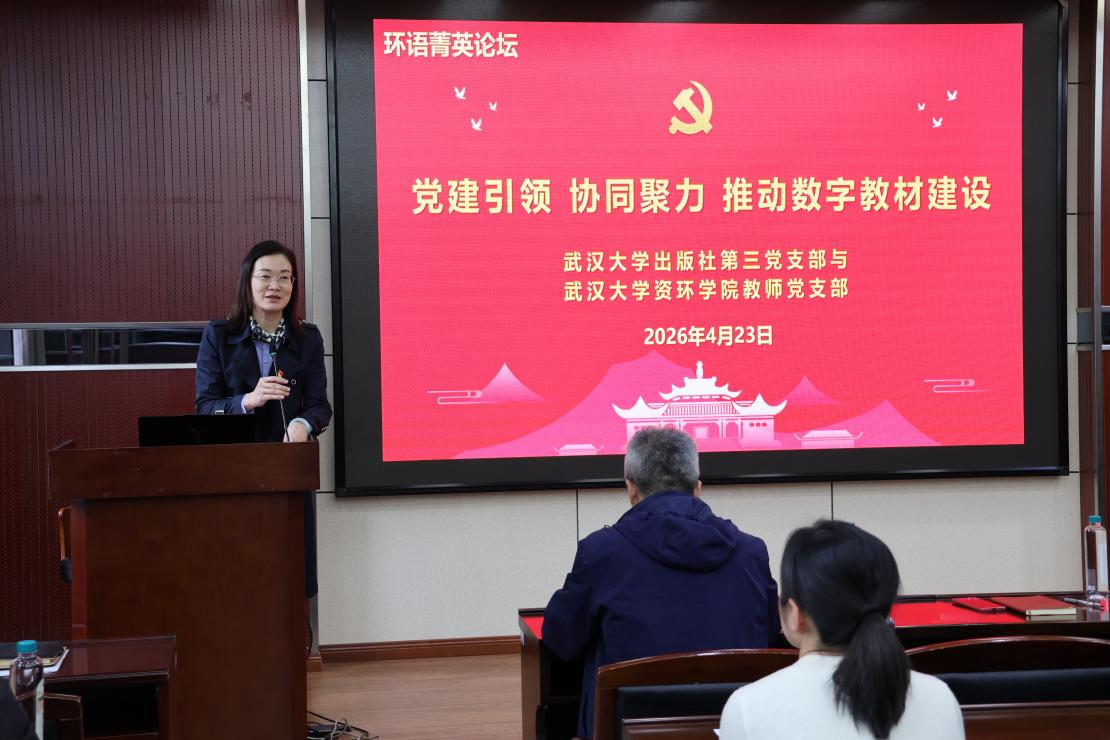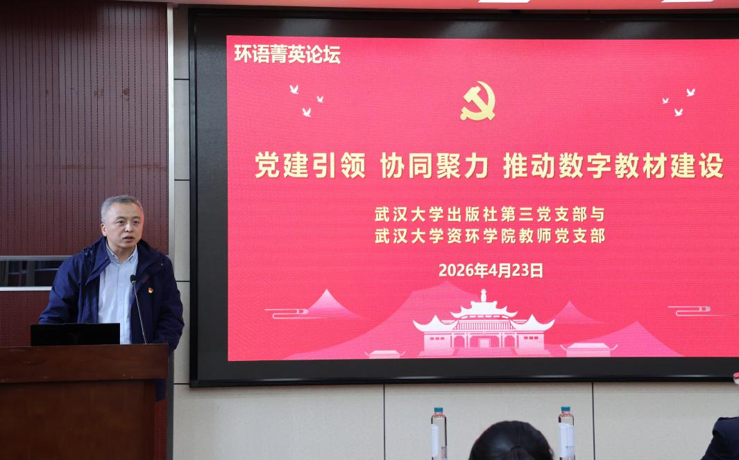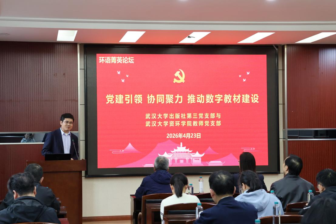 教师党支部在资环学院220报告厅联合举办“环语菁英”论坛。本次论坛以“党建引领 协同聚力 推动数字教材建设”为主题,旨在以党建为纽带,深化出版单位与教学院系的协同合作,推动数字教材与课程使用一体化建设,助力教育数字化转型。本次活动由91沈先生