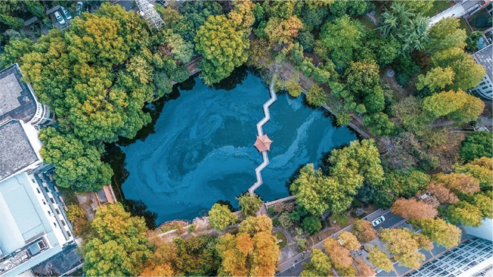 信息学部,呈不规则四边形,大小若半个足球场,湖心有一亭,由曲桥连接两岸,四周树木苍翠。星湖见证了新中国测绘事业的发展,陪伴了一代代地图人的成长。“星湖杯”全国地图设计大赛将秉承“星湖”精神,继续推动地图制图行业蓬勃发展。