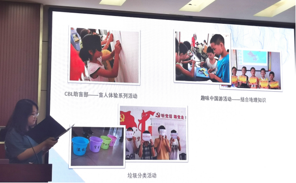 团委科技实践部筹划举办的“暑期社会实践风采展示”在院办220学术报告厅圆满举行。活动邀请了校团委副书记王园老师、院党委副书记冯丹老师、院团委书记华翔老师莅临现场担任评委,同时担任评委的还有院学生团委副书记张今同学和院学生团委副书记冷焯同学。院党委副书记冯丹老师致辞,她介绍了今年暑期社会实践的整体情况,指出今年的时间队伍分布地域分布广阔,实践内容丰富,实践成果颇丰。