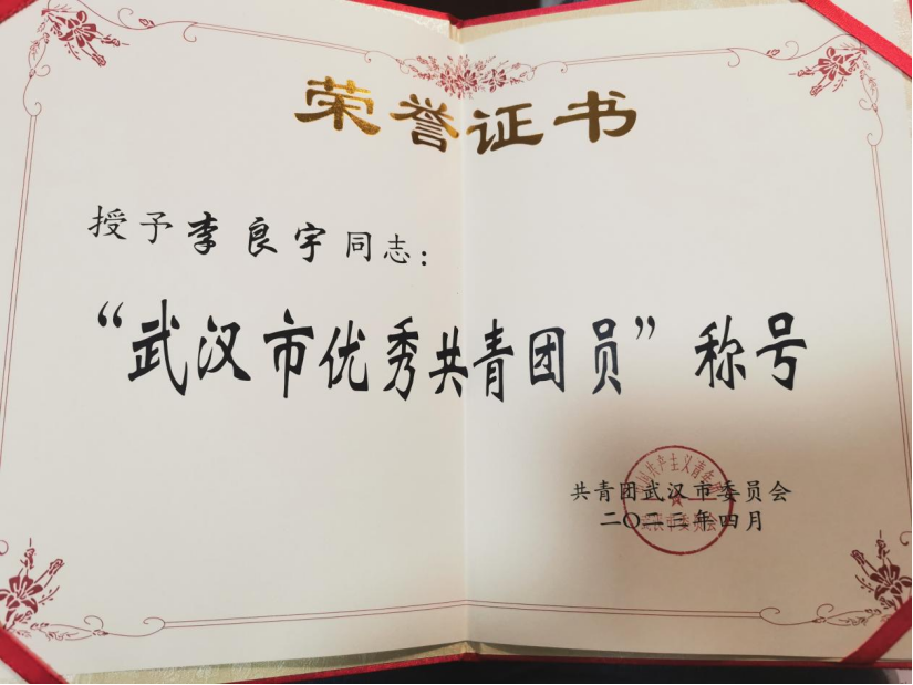 2020级土地资源管理专业本科生李良宇同学名列其中,获得“武汉市优秀共青团员”称号。