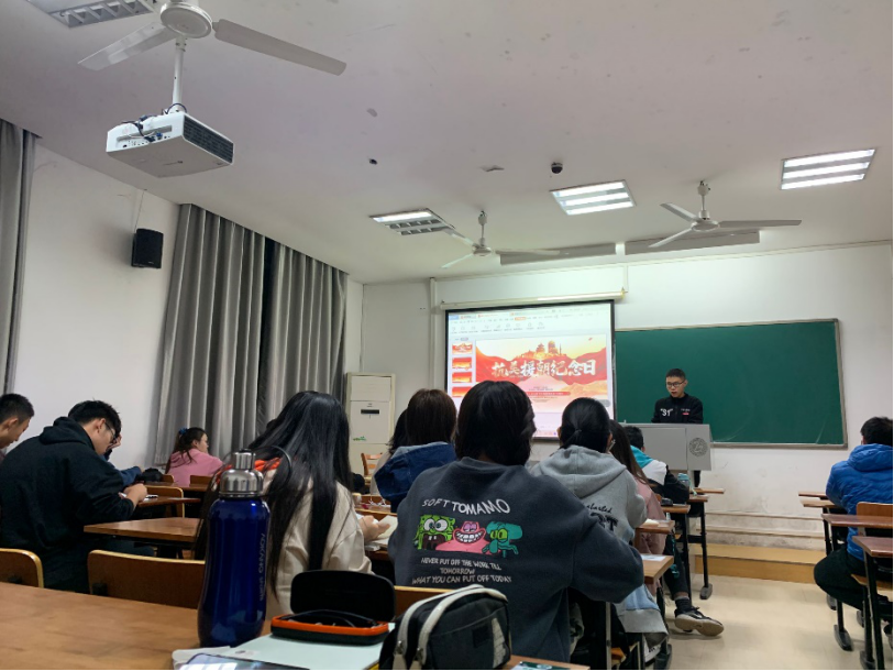 2019级环境科学团支部“纪念抗美援朝出国作战七十周年”主题团日活动分为线下学习和线上评比两个部分,让同学们对抗美援朝的历史和意义有了深入理解,加深对中美关系的思考,在新时代的背景下砥砺前行。让同学真正有自己的思考,去撰写诗词抒发心中的情感,主动去深入了解抗美援朝的意义。线下学习分为知识讲解与视频学习两个阶段进行,团支书讲述抗美援朝战争的相关历史情况和深远意义,分享习近平总书记在纪念中国人民志愿军抗美援朝出国作战70周年大会上的讲话;通过组织支部全体团员观看《英雄儿女》纪录片节选感受革命英雄主义对现代的传承和体现,体会如今和平生活的来之不易。同时还开展了同主题的诗词比赛。