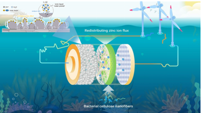目前水系锌电池受锌枝晶生长、界面副反应等问题,导致循环寿命很短。为了解决这些问题,我们开发了一种宽温域水系锌电池电解质,和纤维素纳米纤维锌离子传输整流功能层。纤维素纳米纤维功能层的孔结构特点及其表面化学特性可以调控锌离子在电极/电解液界面的传输及电化学反应,使锌离子均匀再分布,另外,水系电解质中的疏水性离子液体可以通过其阳离子抑制锌沉积过程中的尖端效应实现高可逆性、长寿命的锌沉积/剥离循环,从而解决了锌枝晶生长的问题,相对于一般的水系锌电池,循环寿命延长了8倍以上。此外,废电解质中高价值组分可以通过绿色温和的程回收90%以上,对于储能行业“双碳”政策的落实具有现实意义。